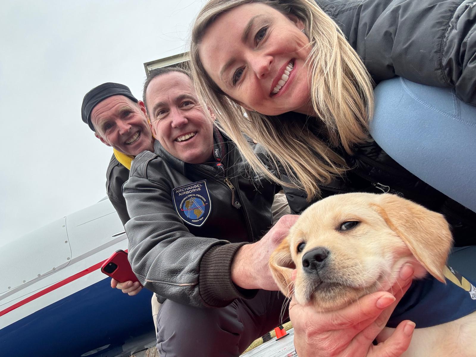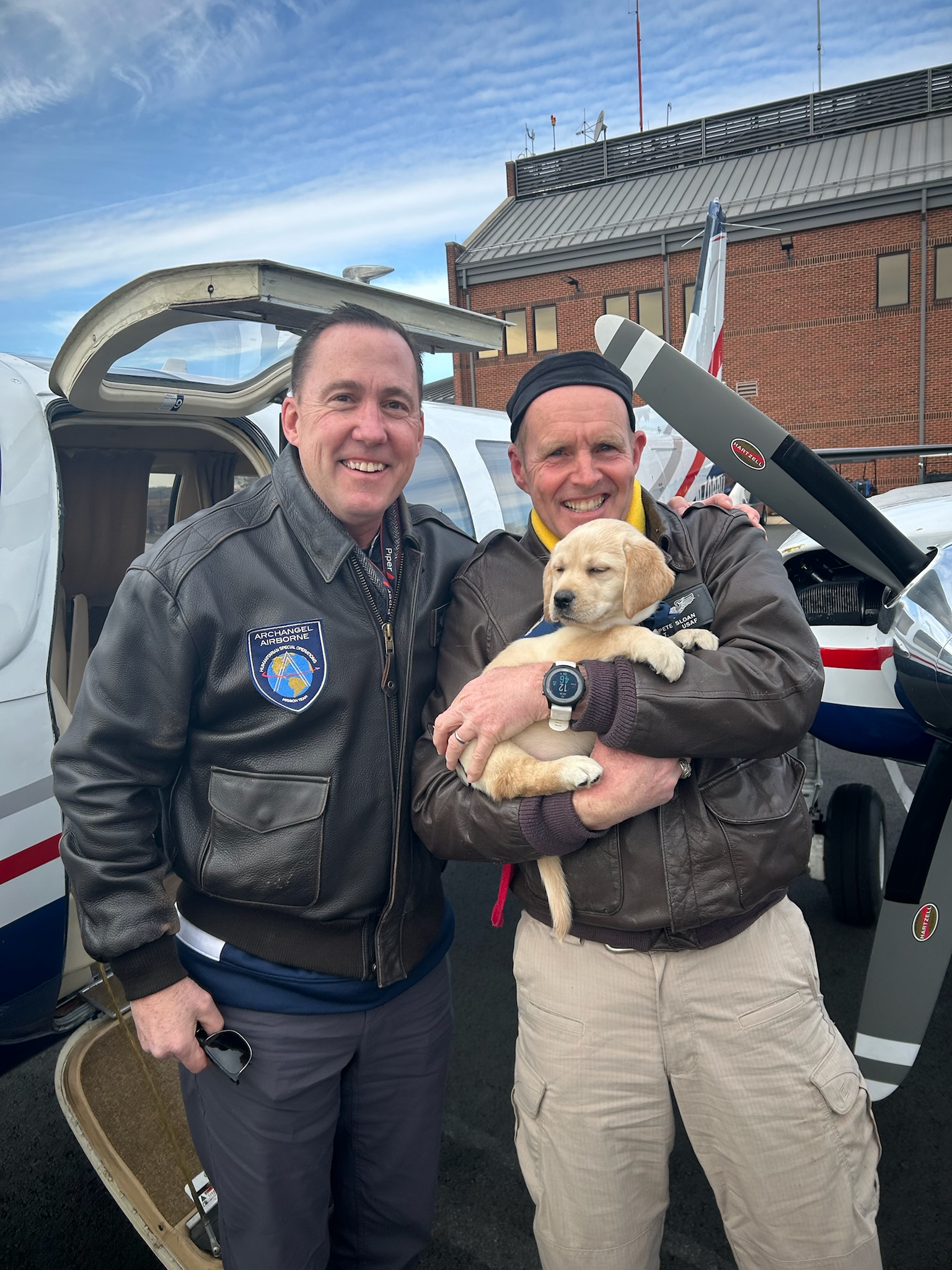 Objectives: This special mission marked the first collaboration between Archangel Airborne and Mercy Medical Angels. Flying together, President Thad & Board Chairman Pete traveled to Charlotte to pick up a special passenger, Grady, an 8 week old Yellow Lab. Along with his trainer and travel companion, Kinga, we brought Grady to Leesburg, VA, where she will train him to work as a service dog for a US veteran. Definitely one of our cutest passengers ever!
